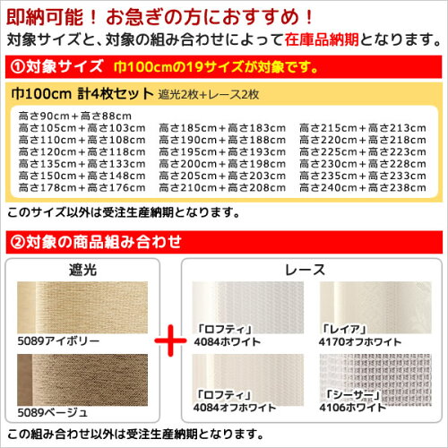 【5/1〜限定クーポン有】 ●送料無料 カーテン 4枚セット 遮光1級 防炎加工 無地 + レースカーテン ミラー 断熱 遮熱 日本製 おしゃれ 巾(幅)100×高(丈)135・150・178・185・190・195・200・205・210cm 厚地2枚+レース2枚 計4枚組 幅100センチ【受注生産A】