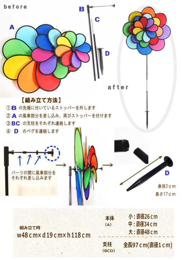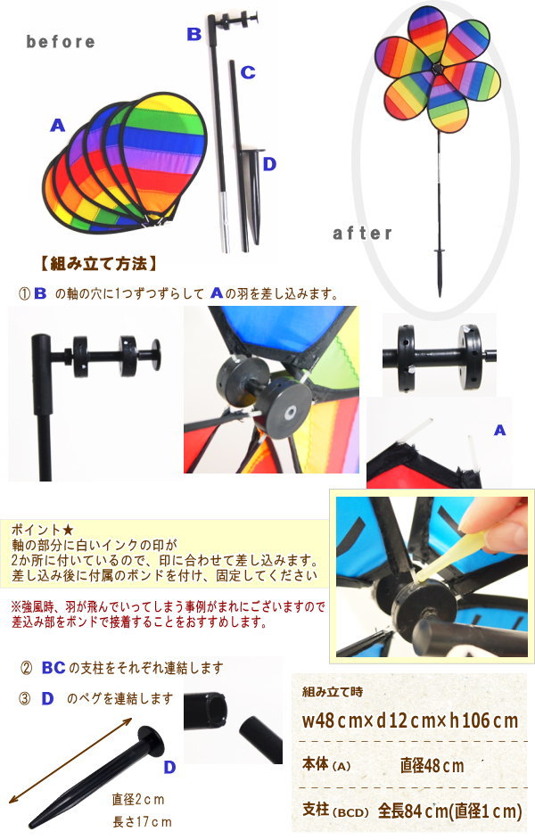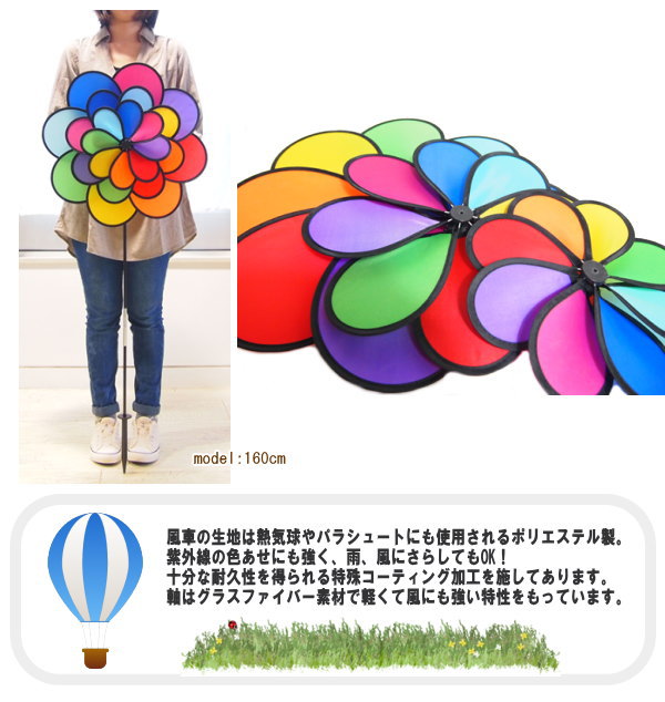 かざぐるま 風車 ビッグ カラフル レインボー キャンプ 目印 カザグルマ キャンプ ITB-2864 in the breeze インザブリーズ ガーデン ガーデニング テント アウトドア 鳥よけ 虫よけ【フラワースピナー レインボーピンウィール(S)】【ネコポス便不可】【あす楽対応】