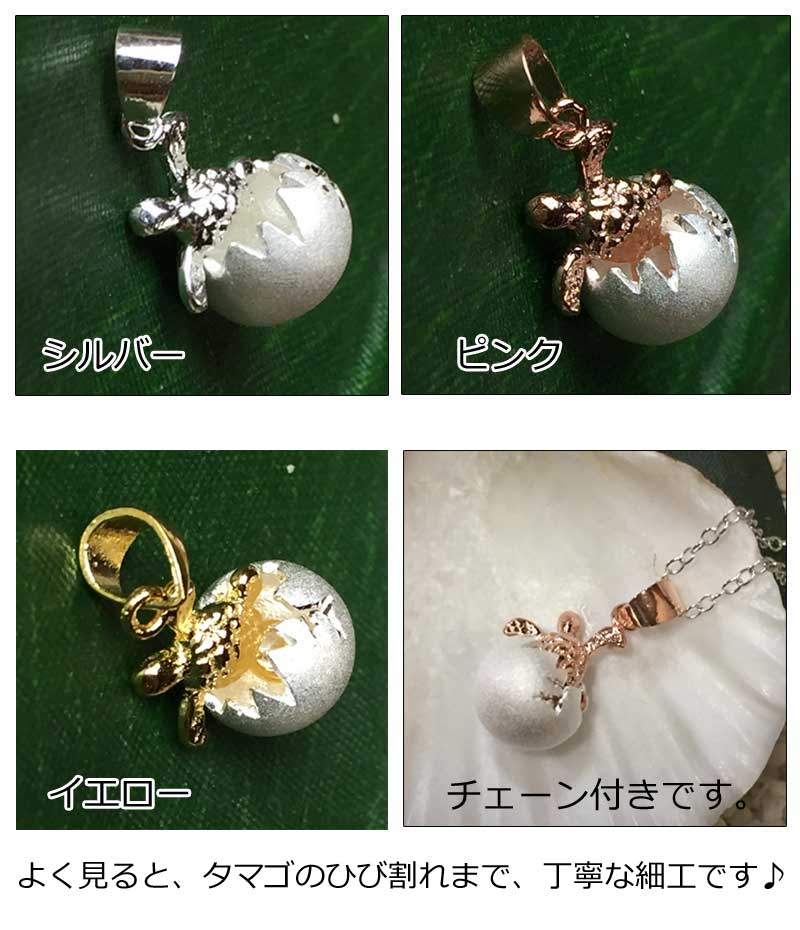 ハワイアンジュエリーで女性に人気のホヌ型ペンダント 柔らかい曲線のタマゴの中から、産まれたての赤ちゃんホヌがキュート。