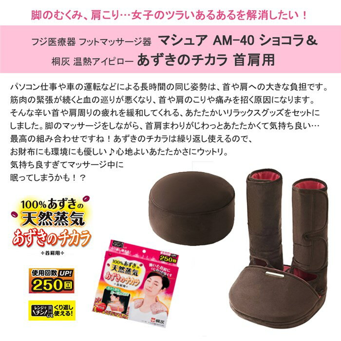 (あずきのチカラ 首肩用セット) フジ医療器(フットマッサージ器)マシュア エアーマッサージャーF AM-40 ショコラ(BR) ブラウン&桐灰 温熱アイピロー あずきのチカラ 首肩用 (ラッピング不可)(快適家電デジタルライフ)